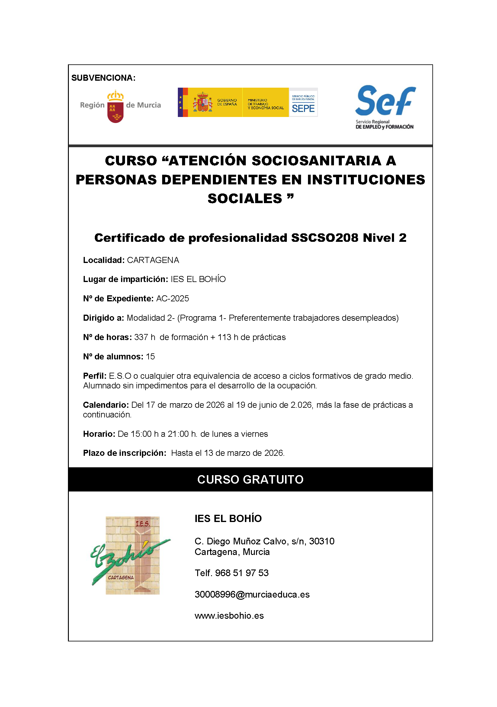 Centro en funcionamiento desde 1980, y que en la actualidad imparte enseñanzas de Educación Secundaria Obligatoria, Bachillerato y Ciclos Formativos de Grado Medio y Grado Superior de las Familias Profesionales de Informática y Comunicaciones, Sanidad, y Seguridad y Medio Ambiente.